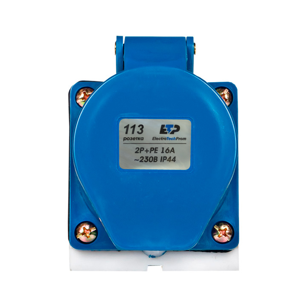 Розетка силовая №113 2Р+РЕ 16А 220В IP44 ETP – стационарный силовой разъем, предназначенный для подключения мощных электрических приборов и оборудования, которые потребляют мощность до 3 кВт.