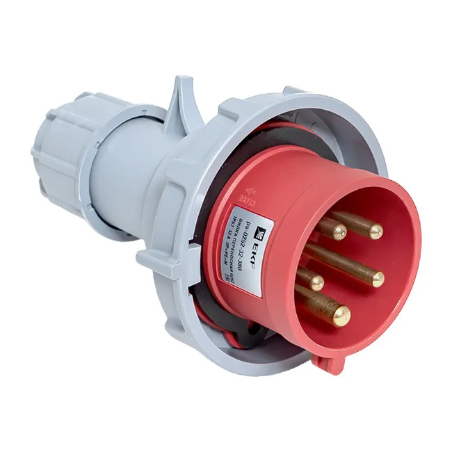 0252 Вилка переносная 3Р+РЕ+N 32А 380В IP67 EKF PROxima — пятиполюсный силовой разъем на номинальный ток 32 А и напряжение 400 В, со степенью защиты IP67, предназначенное для надёжного подключения к электрической сети промышленного и строительного оборудования, а также мобильных объектов в условиях повышенной влажности и запылённости.