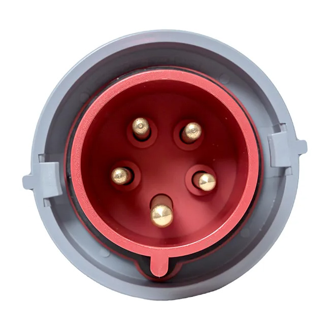 Изделие выполнено в красном корпусе из ударопрочного пластика (RAL 3001), что соответствует стандартному цветовому кодированию для напряжения 400 В. Высокий класс пылевлагозащиты IP67 гарантирует полную герметичность: вилка защищена от проникновения пыли и выдерживает кратковременное погружение в воду на глубину до 1 метра. Это позволяет эксплуатировать её в самых тяжёлых условиях — на строительных площадках, в производственных цехах, на открытых площадках и во временных инфраструктурных объектах.