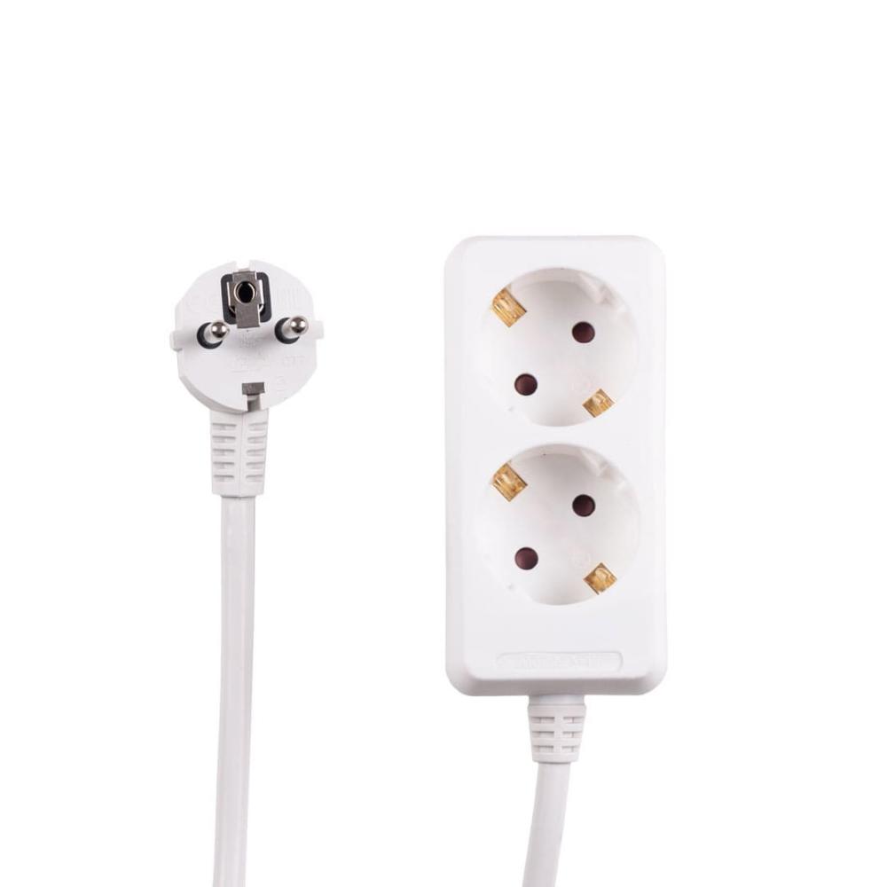 Белый удлинитель с заземлением "POWERMAN" ETP с двумя гнёздами и пятиметровым проводом ПВС 3х0,75 мм2 из 100% меди позволяет подключать к нему 2 прибора общей нагрузкой до 2,2 кВт. Ударопрочный негорючий пластик и износостойкие контакты продлевают срок службы изделия и стабильность работы бытовых приборов, подключенных в него. Неразборная литая вилка с округленными углами позволяет удобно и безопасно пользоваться удлинителем.