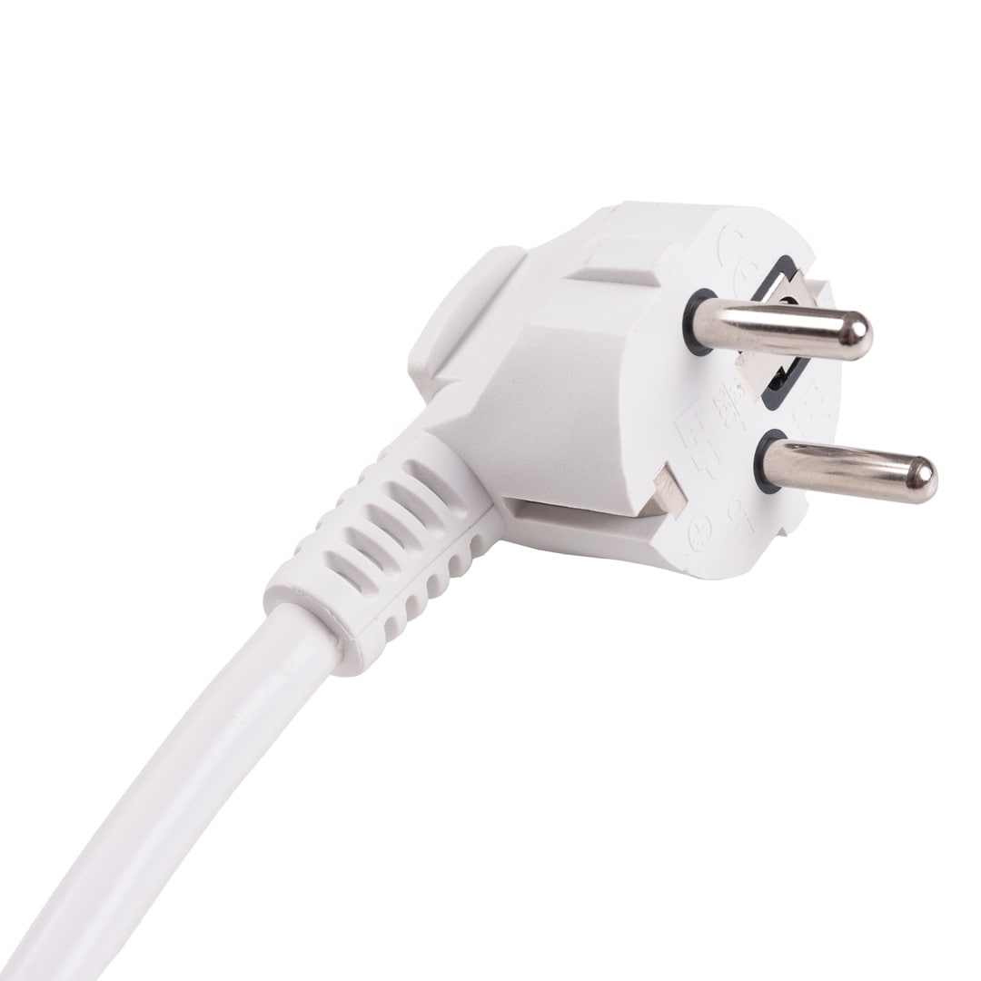 Белый удлинитель с заземлением "POWERMAN" ETP с 3-мя гнёздами и трёхметровым проводом ПВС 3х0,75 мм2 из 100% меди позволяет подключать к нему 3 прибора общей нагрузкой до 2,3 кВт. Удлинитель изготовлен из ударопрочного и негорючего пластика, имеет клавишу на корпусе для одновременного отключения питания всех устройств. Защитные шторки предназначены обезопасить детей от поражения током и от попадания пыли во внутрь. Неразборная литая вилка с округленными углами позволяет удобно и безопасно пользоваться удлинителем.