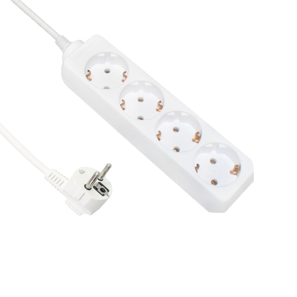 Белый удлинитель с заземлением "POWERMAN" ETP с 4-мя гнёздами и двухметровым проводом ПВС 3х0,75 мм2 из 100% меди позволяет подключать к нему четыре прибора общей нагрузкой до 2,5 кВт. Удлинитель изготовлен из ударопрочного негорючего пластика и имеет упругие износостойкие контакты, что продлевает срок службы изделия. Неразборная литая вилка с округленными углами позволяет удобно и безопасно пользоваться удлинителем.