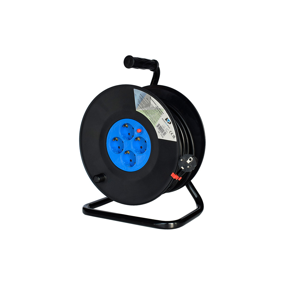 Удлинитель на катушке 4 гнезда 50м, 16А/3,5кW с з/к с предох., ПВС 3х1,5 "CHAMPION" ETP предназначен для подключения электроприборов вдали от стационарной розетки в бытовых условиях эксплуатации. Корпус изготовлен из огнестойкого пластика. Металлическое основание позволяет удобно использовать удлинитель и транспортировать его. На катушке есть предохранитель, который защитит удлинитель от повреждений в результате превышения допустимой нагрузки.