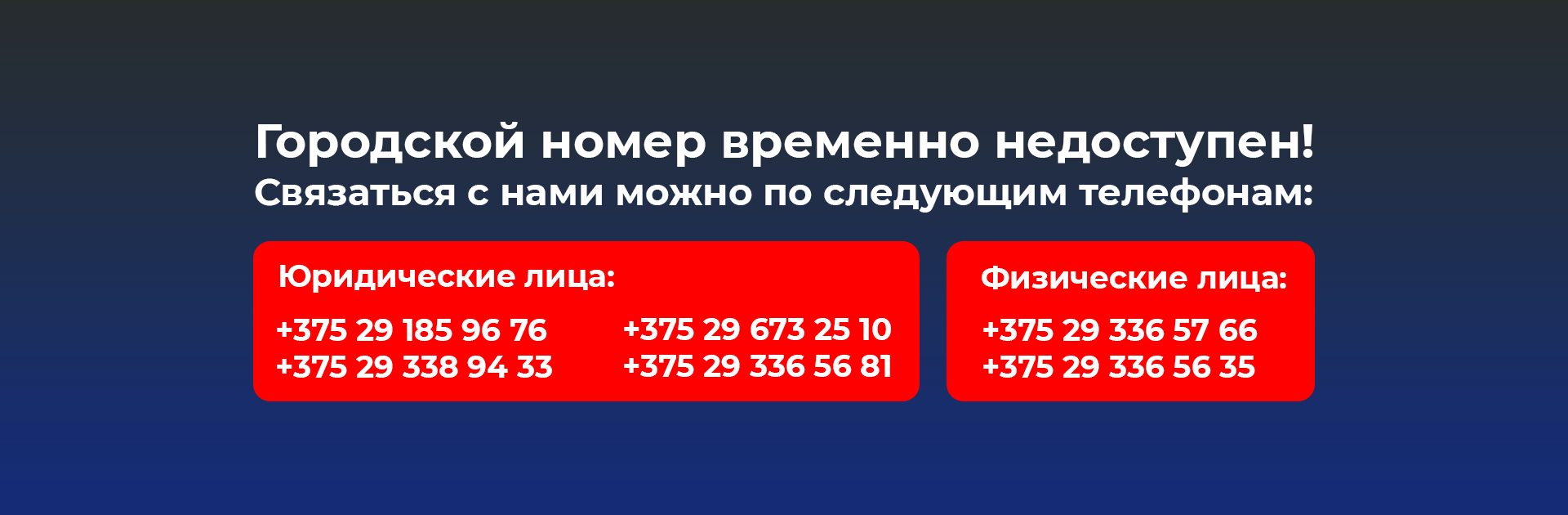 В связи с недоступностью городского номера телефона, просим вас звонить на мобильные телефоны компании.