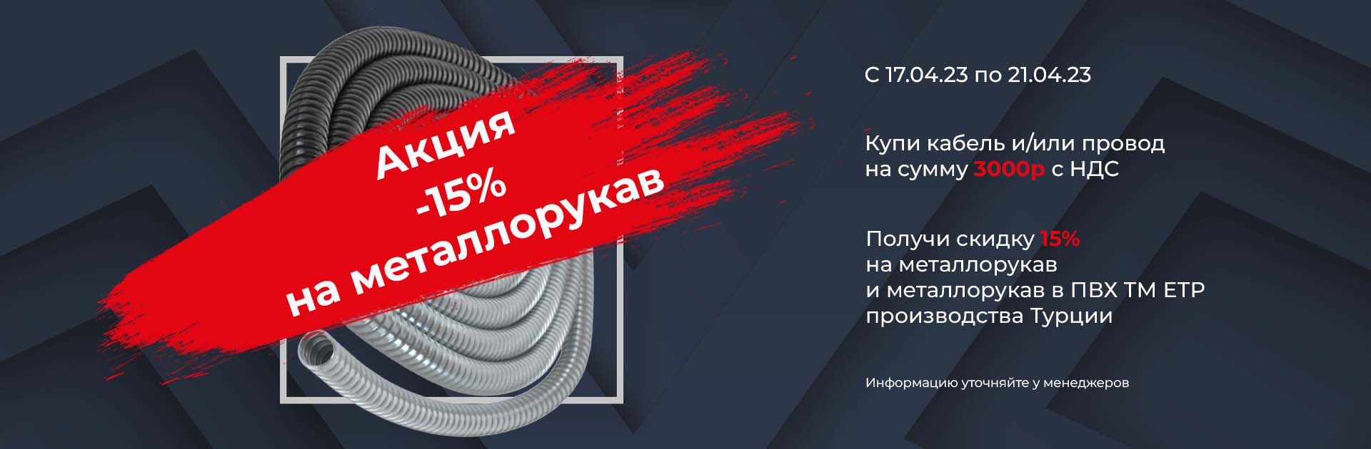 C 17.04.23 по 21.04.23 действует акция «-15% на металлорукав» ТМ ЕТР Турция.